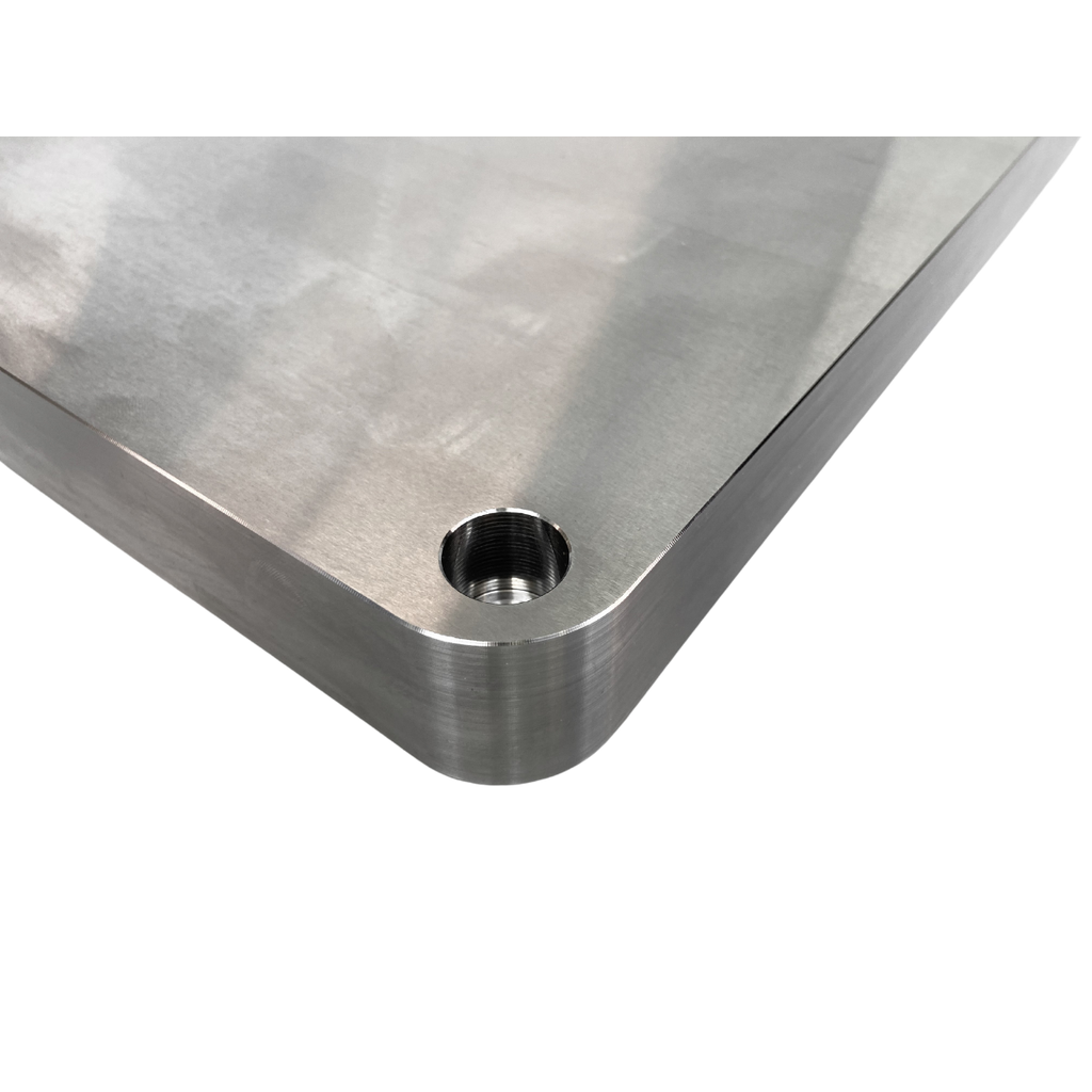 Plateforme de construction en acier de 400 x 400 x 40 mm fabriquée en 1.0503 (C45). Convient à tous les procédés de l’acier. Compatible avec M 400 / M 400-4