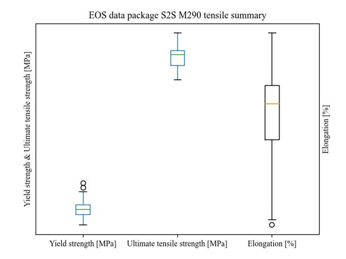 Le EOS M System Data Package offre des données sur la variation typique entre des systèmes du même type (la variation d’une machine à l’autre). Le paquet comprend des données uniques des tests d’acceptation du système, incluant les propriétés mécaniques de la pièce imprimée provenant de la fabrication du système d’EOS.