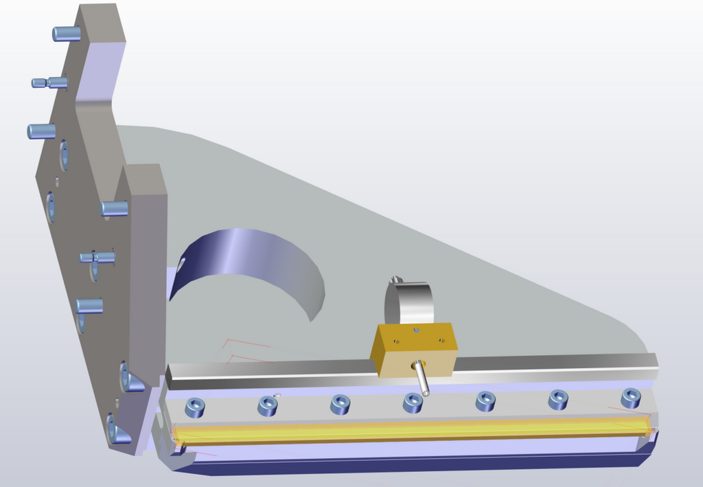 Une installation correcte implique de fixer la lame à l'aide de boulons à tige de précision et de boulons de fixation, en veillant à laisser un espace de 0,5 mm entre la lame et le support de la plate-forme de construction.