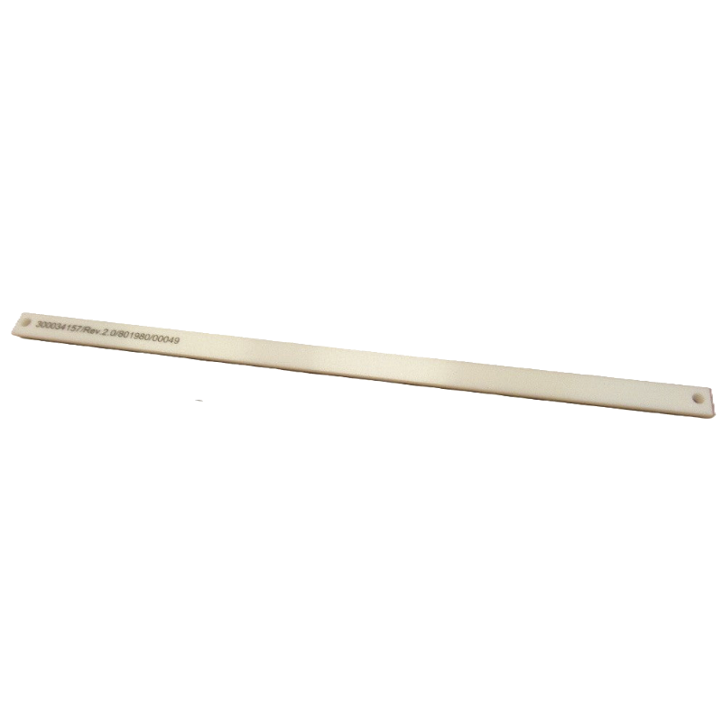 Cette lame de recouvrement en céramique à base d'oxyde de zirconium (ZRO2-Y2O3 / ZN 101B) est conçu pour être utilisé dans la station de traitement (chambre de traitement). Il est doté d'un long bord qui doit être orienté vers le bas lors de l'installation, afin que les deux extrémités touchent les plaques de référence correspondantes. La lame est utilisée dans des procédures telles que le remplacement de la lame du dispositif de recouvrement auxiliaire. Ce produit est compatible avec les systèmes M 300 / M 300-4.
