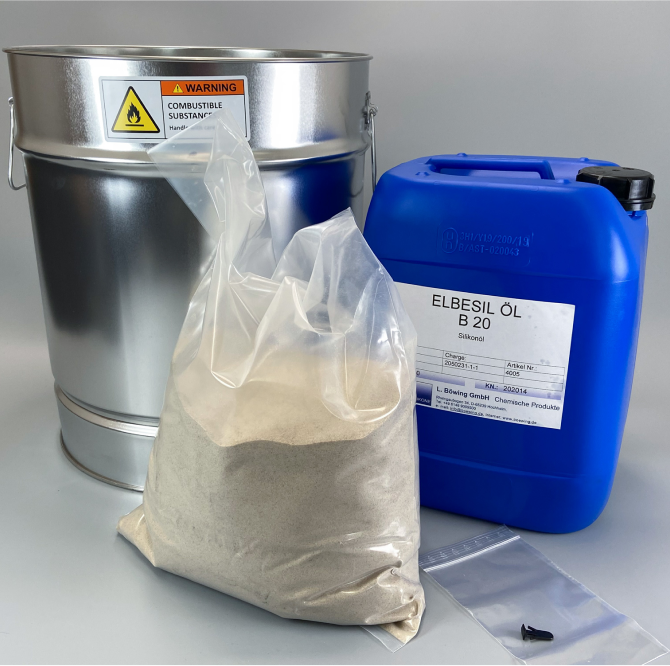 Le kit de remplacement du bac collecteur de particules contient : 7 kg de sable de quartz et 7 litres d'huile de silicone. Ce produit est compatible avec les systèmes M 290 et M 400 / 400-4.